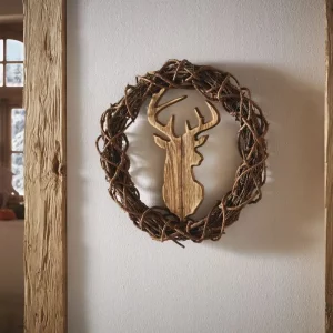 Der Kranz „Hirsch“ ist eine wundervolle Deko für Ihre Wand. Er ist aus Birkenholz geflochten und mit einem schönen Hirschmotiv aus Pappelholz verziert. So bringen Sie einen Hauch von Natur und Gemütlichkeit in ihr Zuhause.